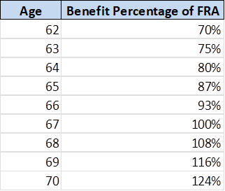 On the other hand, if you wait until age 70, you get 124% of your benefit - or an 8% increase every year (it’s actually calculated at .667%/month).